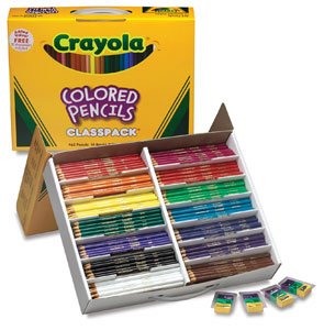 This Classpack contains 462 pre-sharpened pencils. There are 35 of each of the following colors: Red, Orange, Yellow, Green, Blue, Black, and White. There are 31 of each of Raspberry, Red-Orange, Yellow-Green, Green-Blue, Navy Blue, Violet, and Brown.